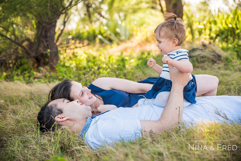 Une séance photo à l’ombre des arbres de l’Etang-Salé avec M&J et leur adorable petite fille !
